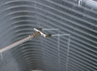 3.内部のアルミフィンなどを洗浄して、しつこい汚れはブラシでこすり落とします。